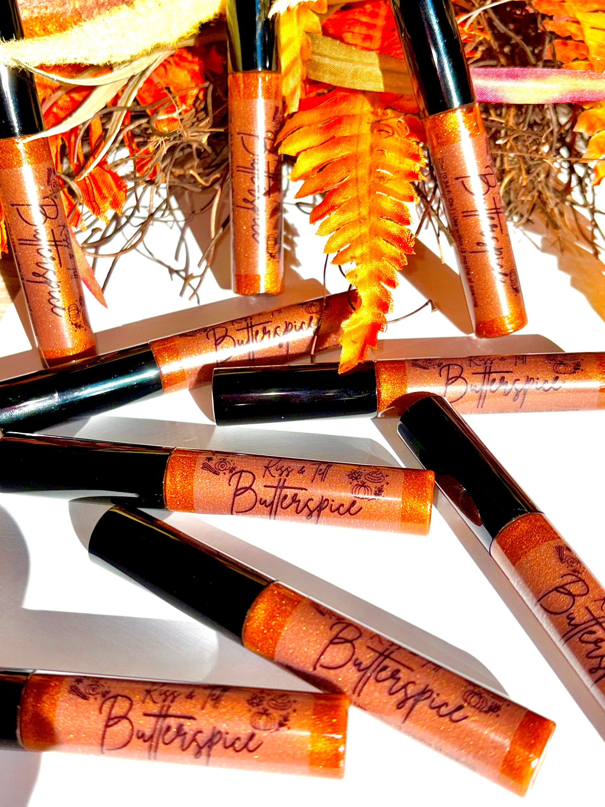 Meet your new fall obsession: Butterspice. Inspired by the comfort of pumpkin spice and the sweetness of buttercream frosting, this gloss was made to capture everything we love about cozy season. With a sheer orange tint and golden shimmer, it adds just the right touch of warmth and glow to your lips. The texture is buttery smooth and non-sticky, keeping your pout soft and hydrated all day. And the best part? That sweet, spiced scent/taste that makes every swipe feel like a little autumn treat.